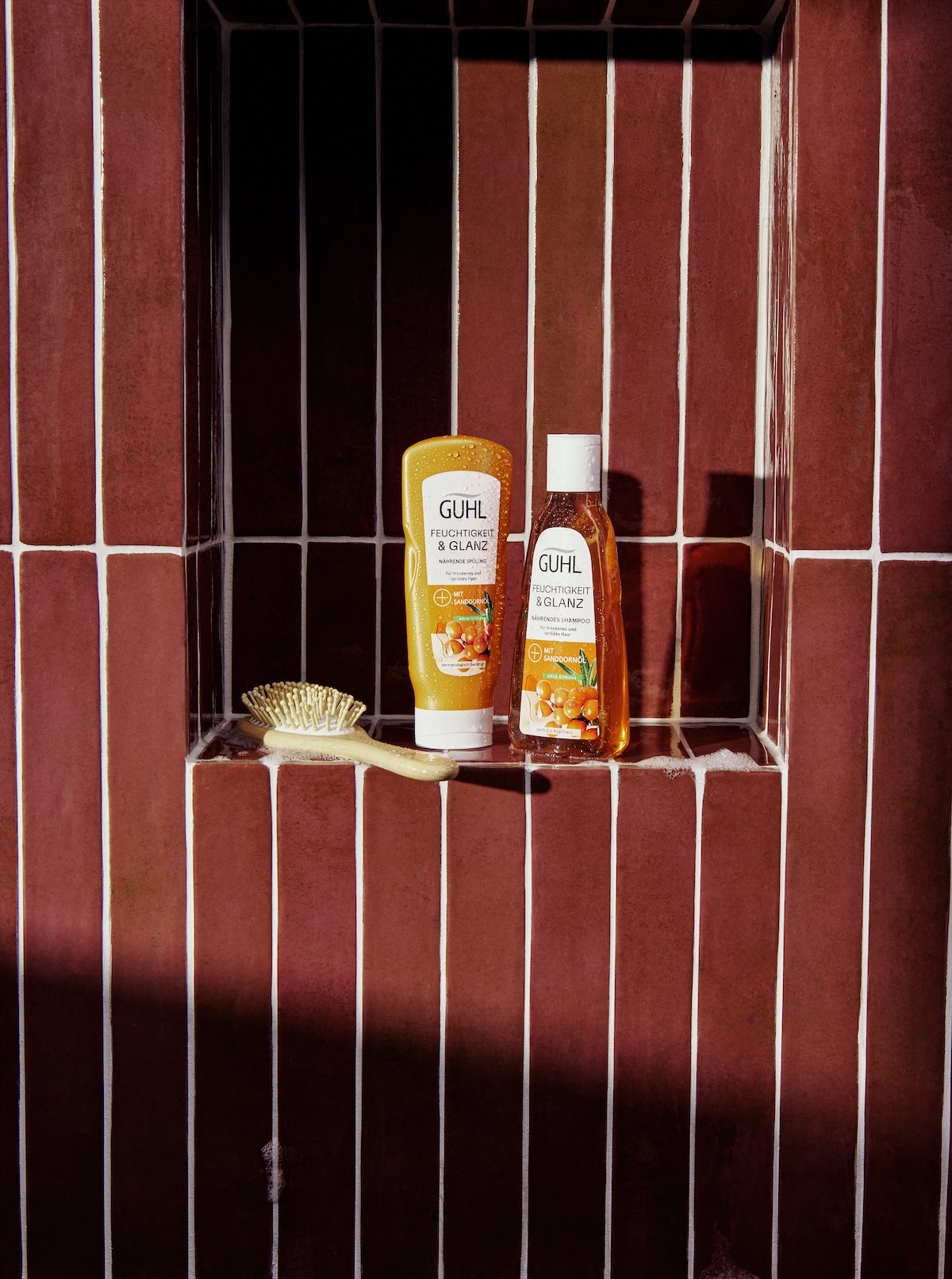 Durstiges, glanzloses Haar? Unsere Linie Guhl Feuchtigkeit & Glanz ist dein Elixier für intensive Feuchtigkeit und strahlenden Glanz! Die Linie, bestehend aus nährendem Shampoo und Spülung, versorgt dein Haar, bei regelmäßiger Anwendung, nachhaltig mit Feuchtigkeit und stärkt es von innen heraus. Dafür dringt die Formulierung mit reichhaltigem Sanddornöl und Vitamin E tief in die Haarfaser ein, optimiert die feuchtigkeitsbindenden Eigenschaften des Haares – und sorgt dafür, dass dein Haar wieder gesund glänzen kann. Genieße mit jeder Anwendung eine tiefenwirksame Pflege, die dein Haar nicht beschwert und sanft mit dem fruchtigen Duft erfrischender Orange und süßer Brombeere umhüllt.